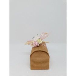 Contenant dragées tendance, dans coffre en carton ondulé couleur kraft, très jolie décoration pour communion. Avec à l 'intérieur, 3 dragées amande écrue, 3 dragées au chocolat rose et 3 dragées au chocolat blanche. Dragées de très bonne qualité, amande à 46 % et chocolat à 70 % de cacao, vendus sur notre site pour partager avec vos convives au moment du...