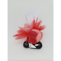 Contenant à dragées sur le thème de la moto de course, pour les fans de moto. Avec à l'intérieur 3 dragées Avola amande blanche, 3 dragées chocolat rouge et 7 billes argentées. Dragées de très bonne qualité, amande 40 %, chocolat 70 % de cacao vendus aussi sur notre site pour partager avec vos...