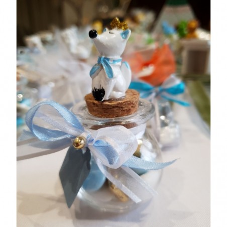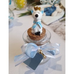 Pot en verre rond avec petit prince renard, avec sa couronne couleur or.