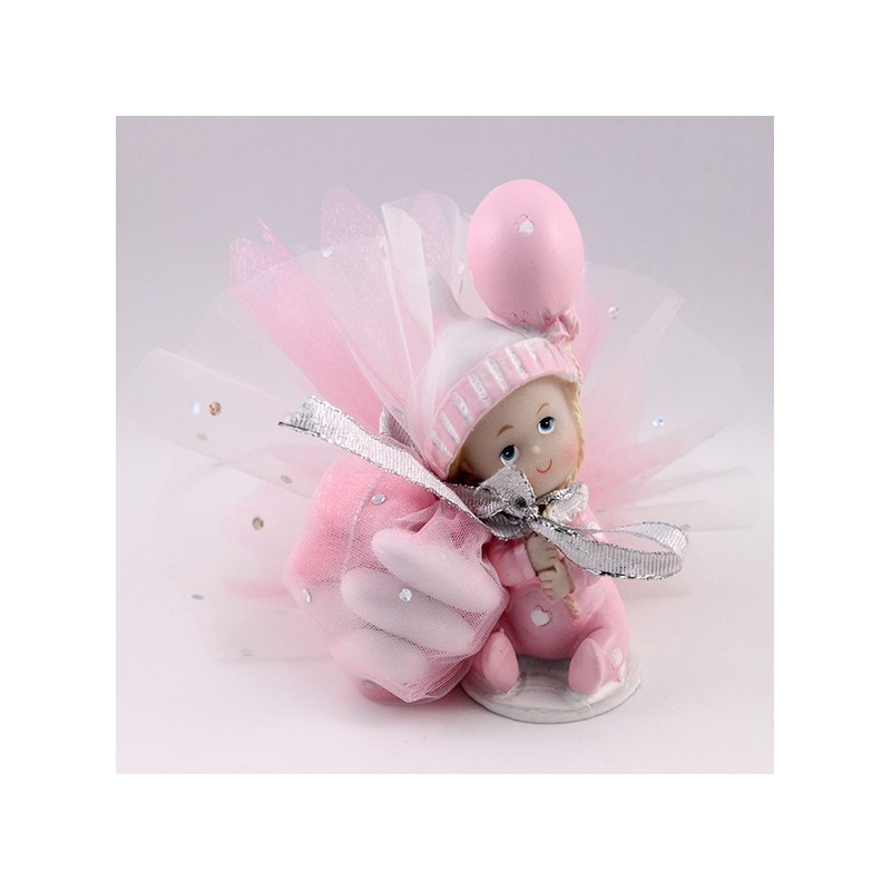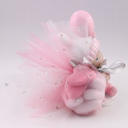 Très joli sujet bébé fille avec son pochon rose et blanc strassé, très doux,