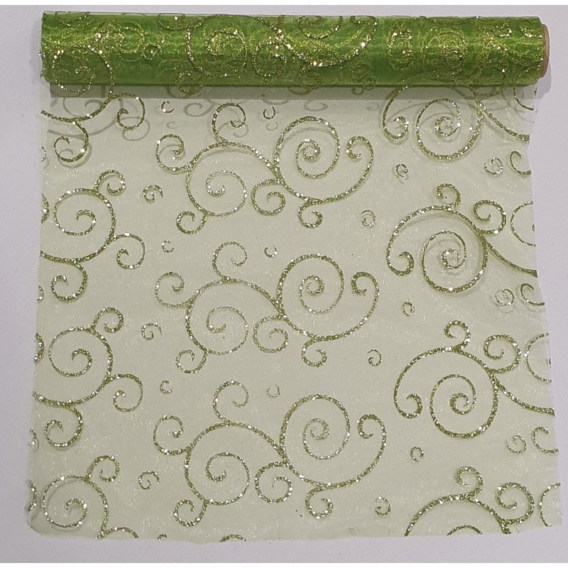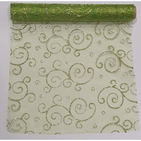 Chemin de table arabesque pailleté vert anis 29cm x 5m