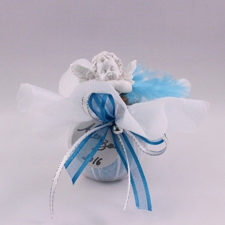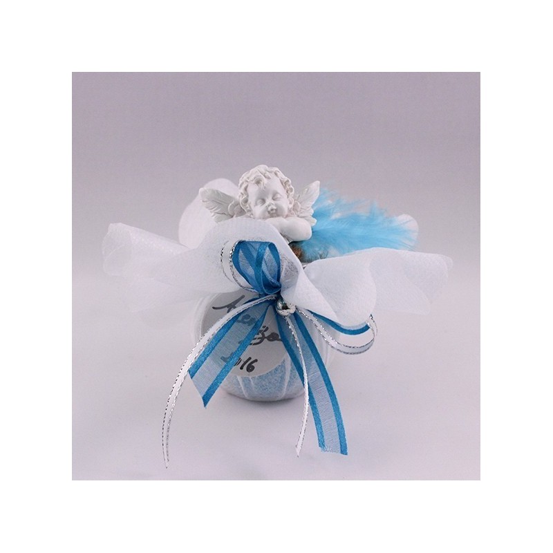 Contenant dragées baptême avec un ange porte photo,
