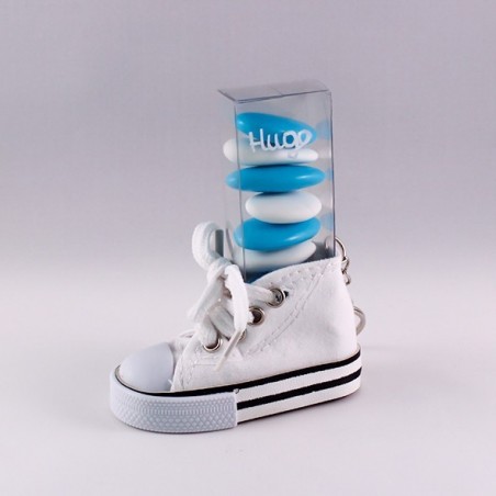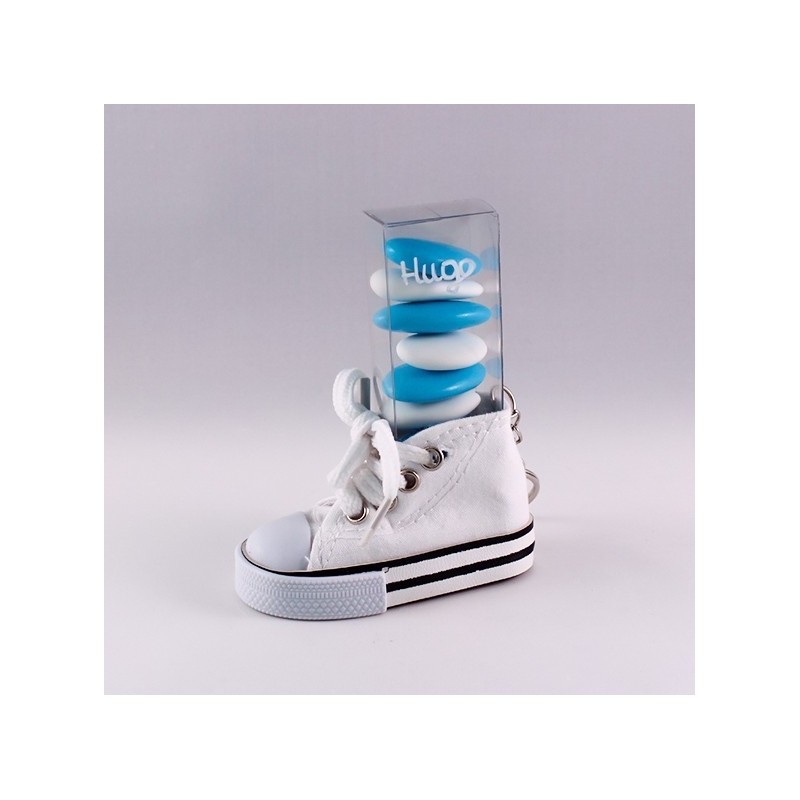 ce contenant à dragées à offrir à vos invités, basket blanche porte clef