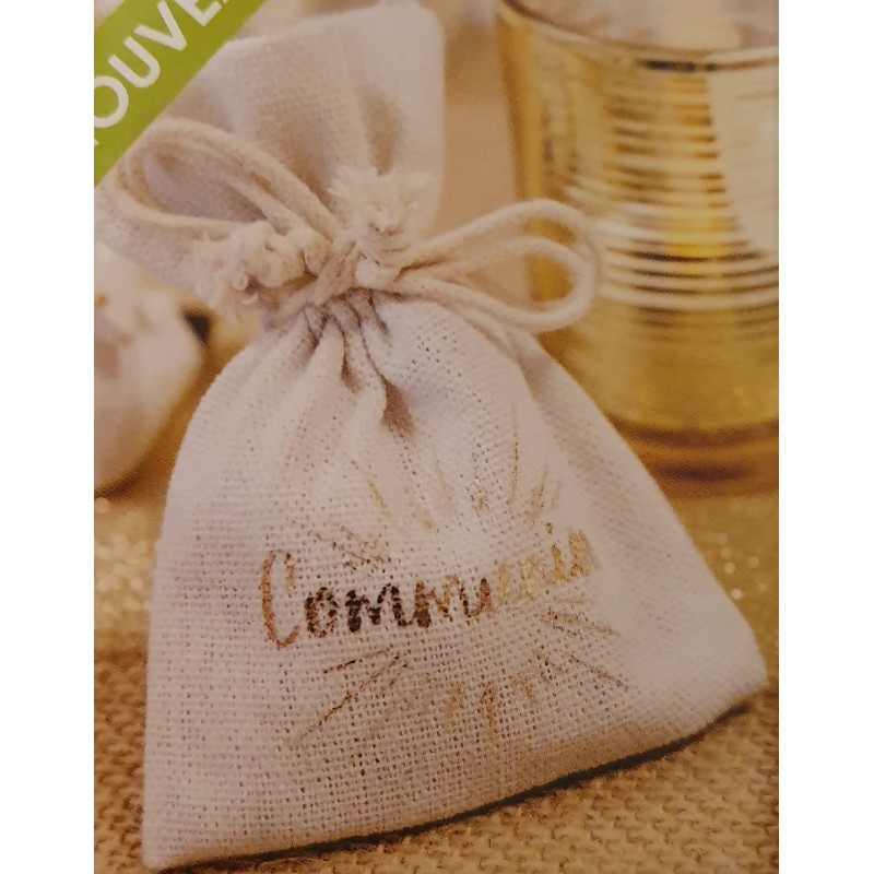 Contenant pochon effet lin avec impression "communion"
