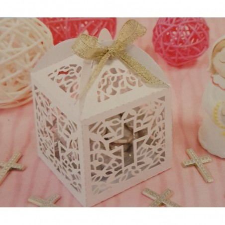 Contenant boîte à dragées blanche pour communion,