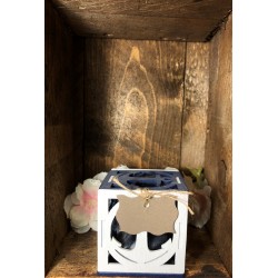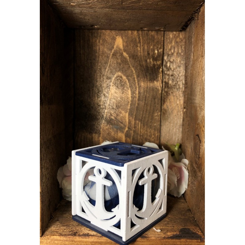 Cube en bois bleu marine et blanc, avec motif ancre idéal pour le thème de la mer,
