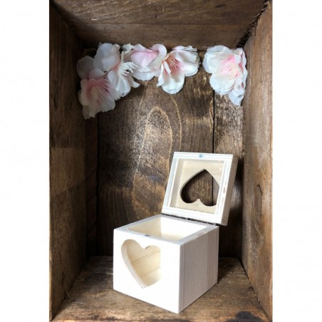 Cube en bois avec ouverture cœur devant et au dessus, modèle très original,