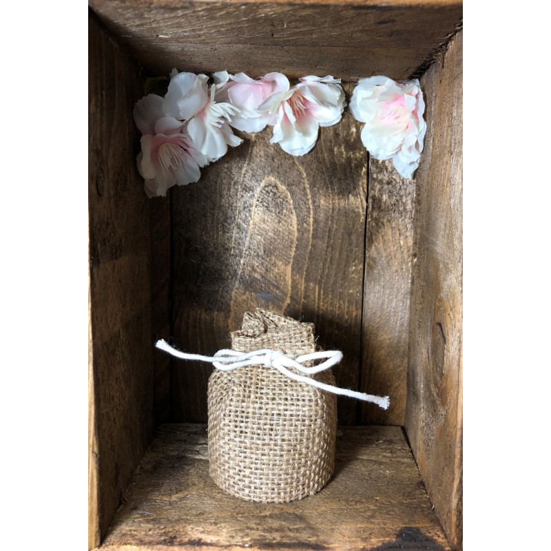 Bourse en toile de jute naturelle avec fermeture cordelette.