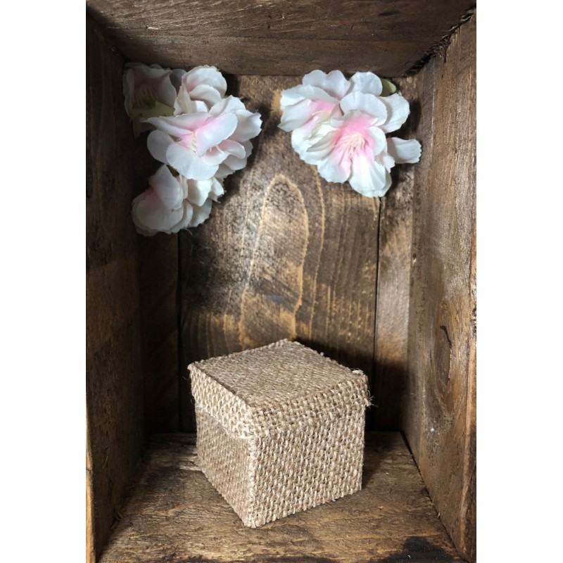 Contenant cube en toile de jute, Modèle champêtre.