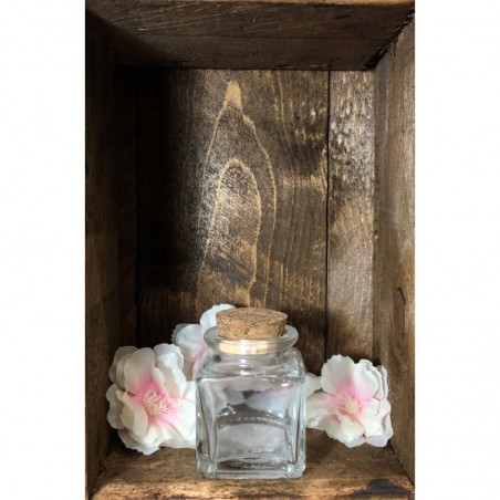 Contenant pot carré en verre pour 7 à 9 dragées maximum.