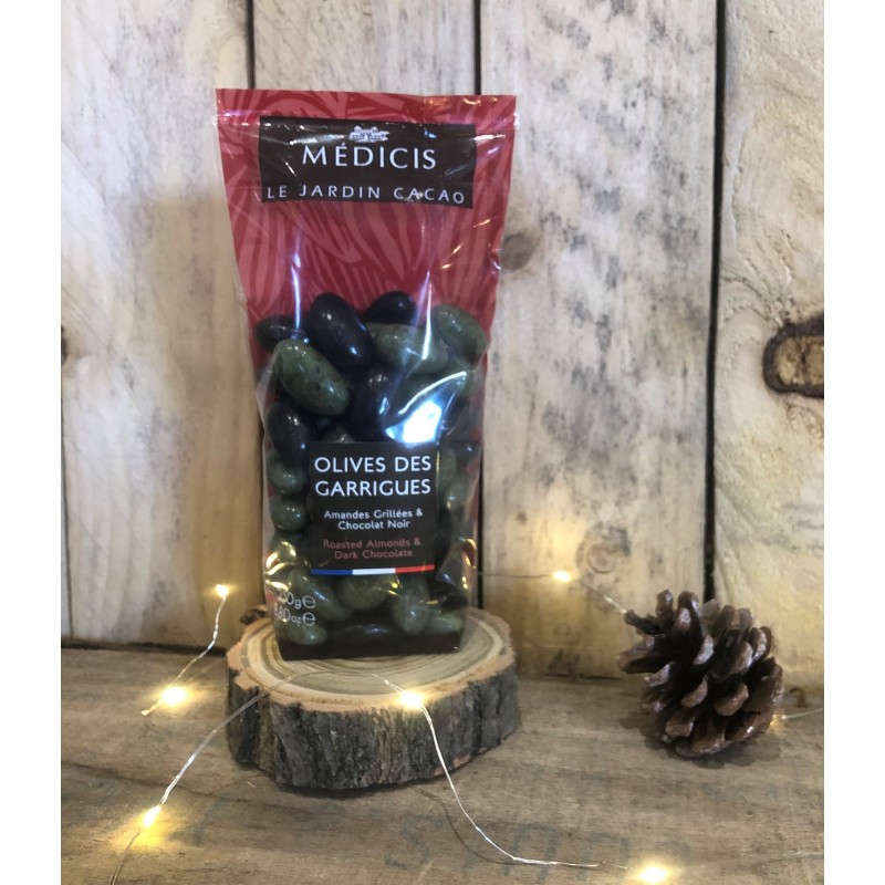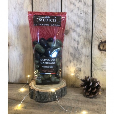Ingrédients : Sucre, pâte de cacao, AMANDES 20 %, beurre de cacao, LAIT entier en poudre, pâte de NOISETTES, émulsifiant (lécithine de SOJA), gomme arabique, vanilline, agents d'enrobage (sirop de glucose, E904), Colorants (E141, E153, E160c).
