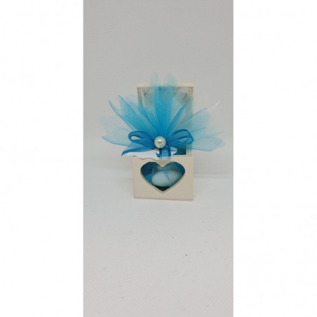 Avec à l 'intérieur 3 dragées amande écrue , 4 dragées chocolat turquoise.