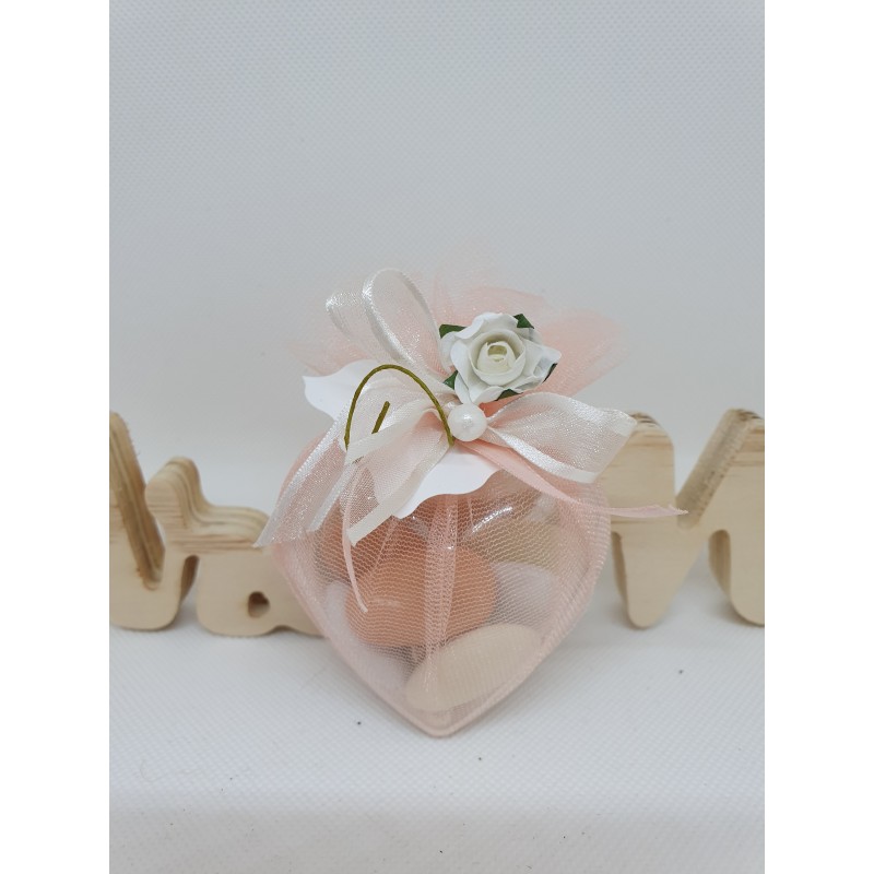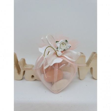 Contenant dragées cœur en plexi, original de part la couleur saumon