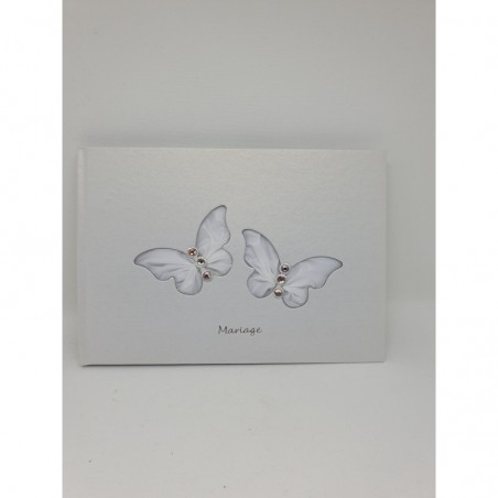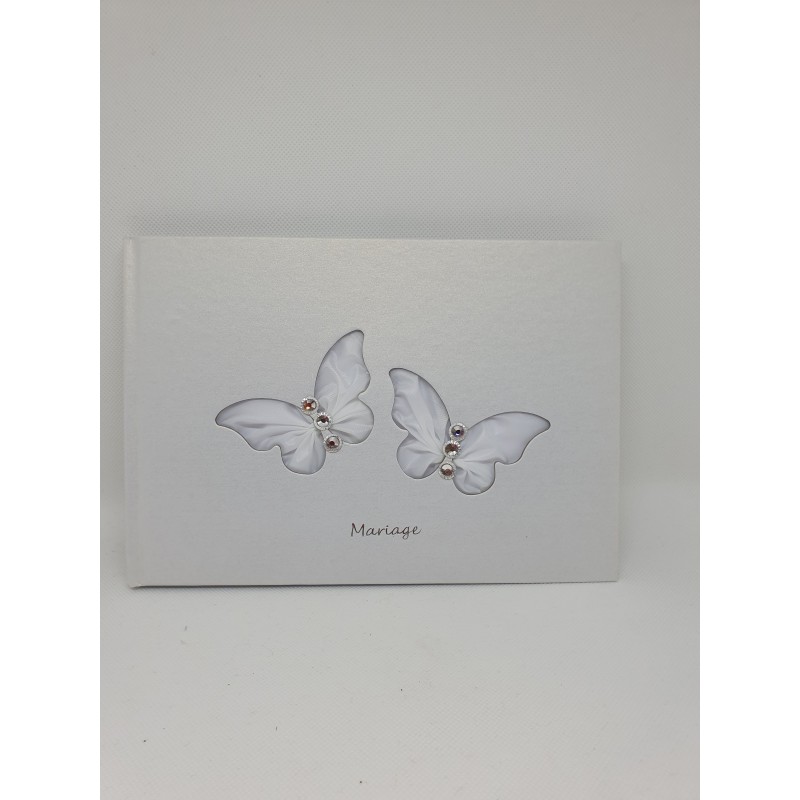 LIVRE D 'OR PAPILLONS SATIN BLANC AVEC STRASS 21 x 15 cm