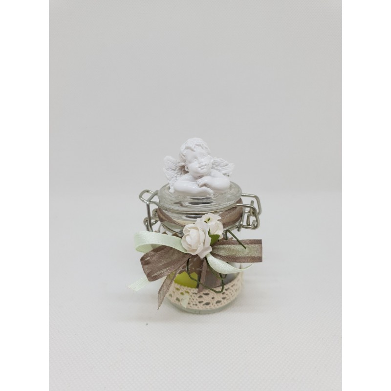 3 dragées chocolat taupe et 3 dragées chocolat vert d'eau.