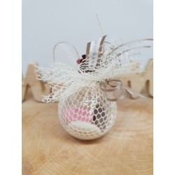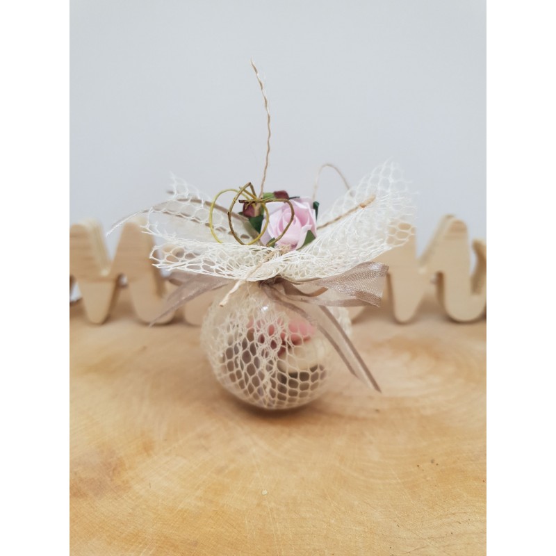 Contenant boule en pvc transparente habillée d'un tulle thème champêtre,