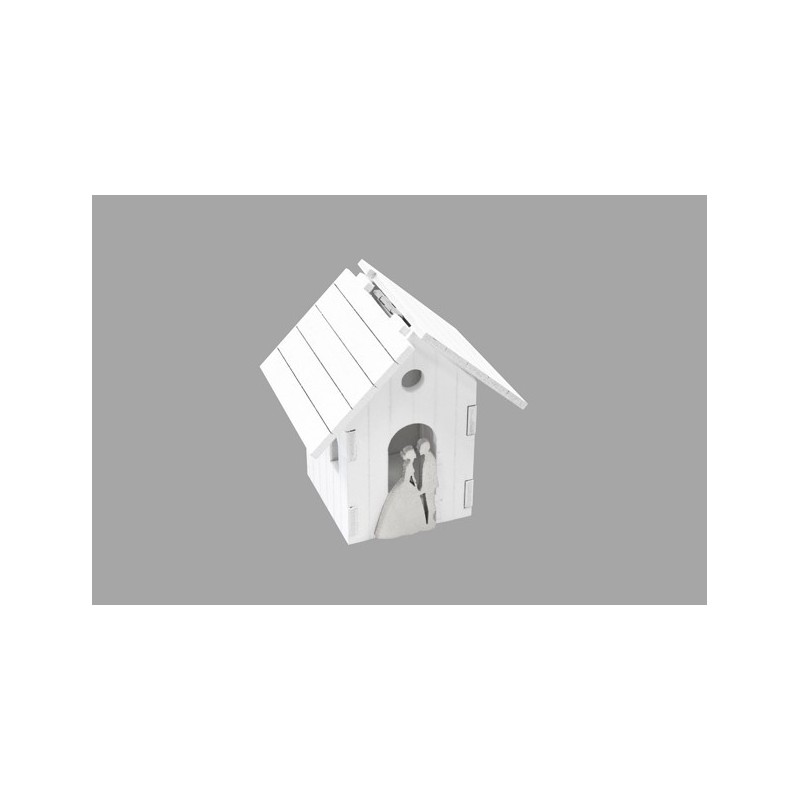 Contenant mariage, nouveau et très original maison en bois, avec couple.