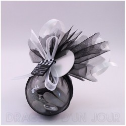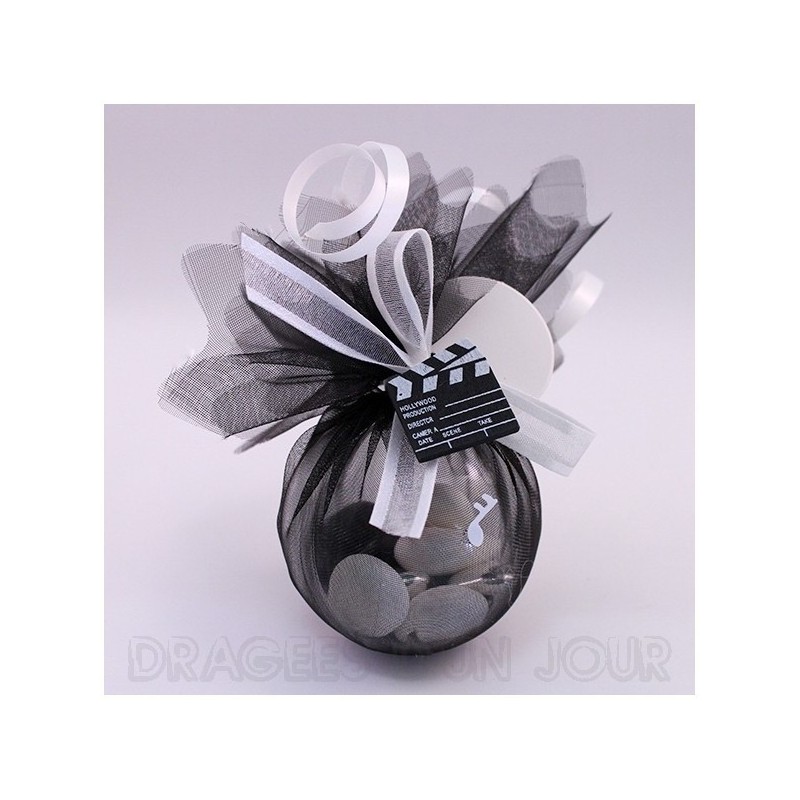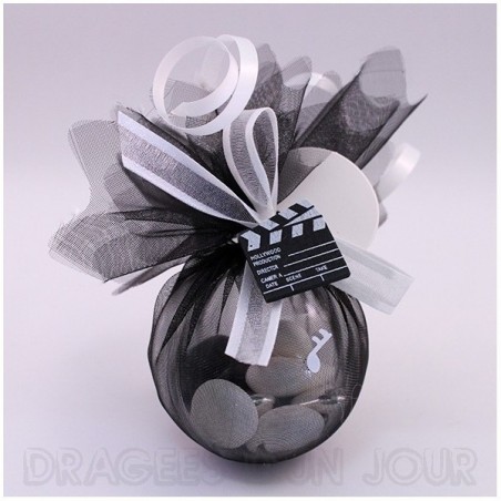 Contenant de dragées boule en plexi habillée d'un tulle noir